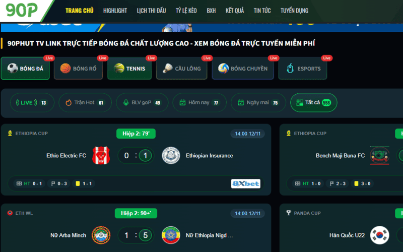 - Bước 3: Tại trang chủ, bạn sẽ thấy danh sách các trận đấu đang và sắp diễn ra.