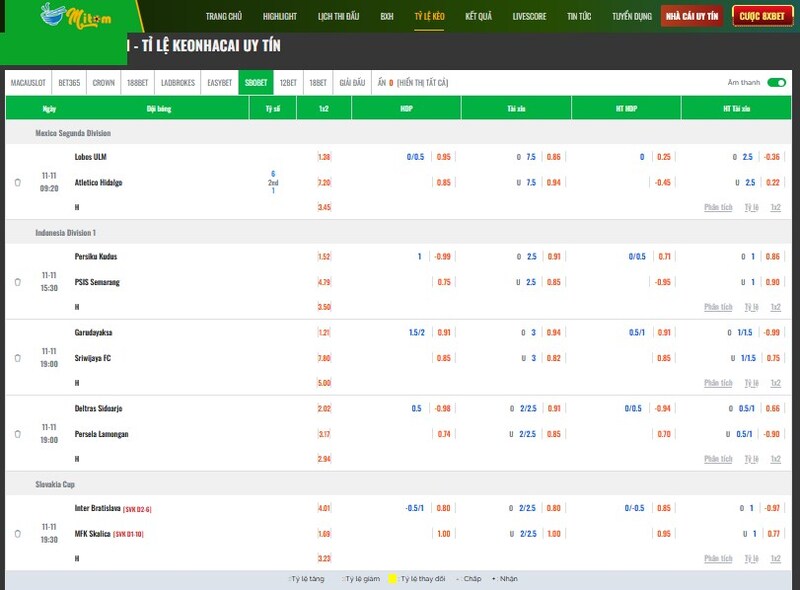 - Giao diện trực quan: Từng tỷ lệ, từng dòng kèo đều hiển thị rõ ràng, giúp bạn so sánh và đưa ra nhận định nhanh chóng.