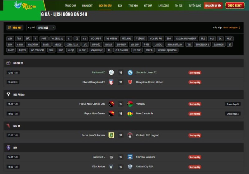 - Sắp xếp khoa học: Chia theo ngày, theo giải, theo đội bóng hoặc theo vòng đấu; bộ lọc thông minh giúp tìm trận đấu bạn quan tâm chỉ trong vài giây.